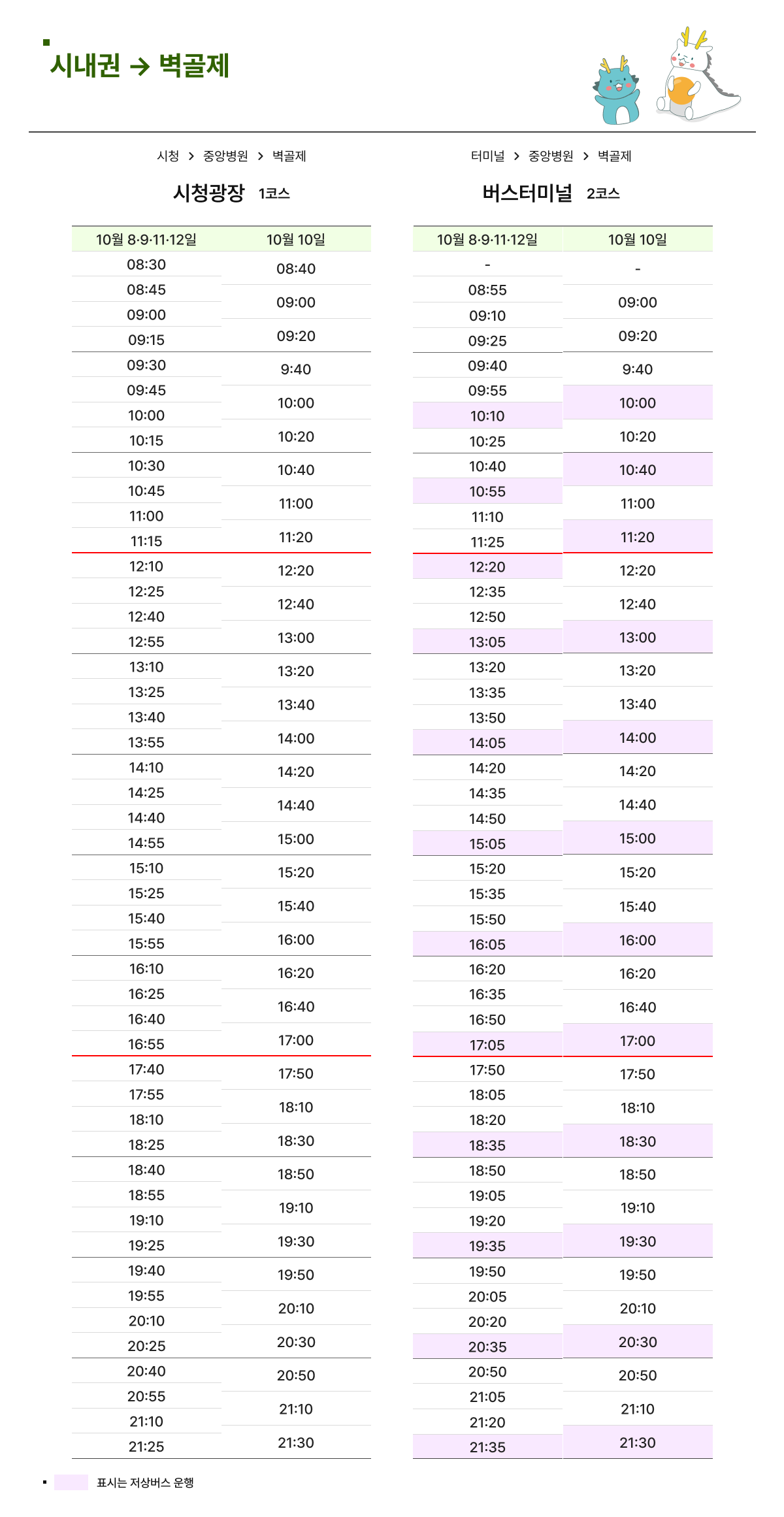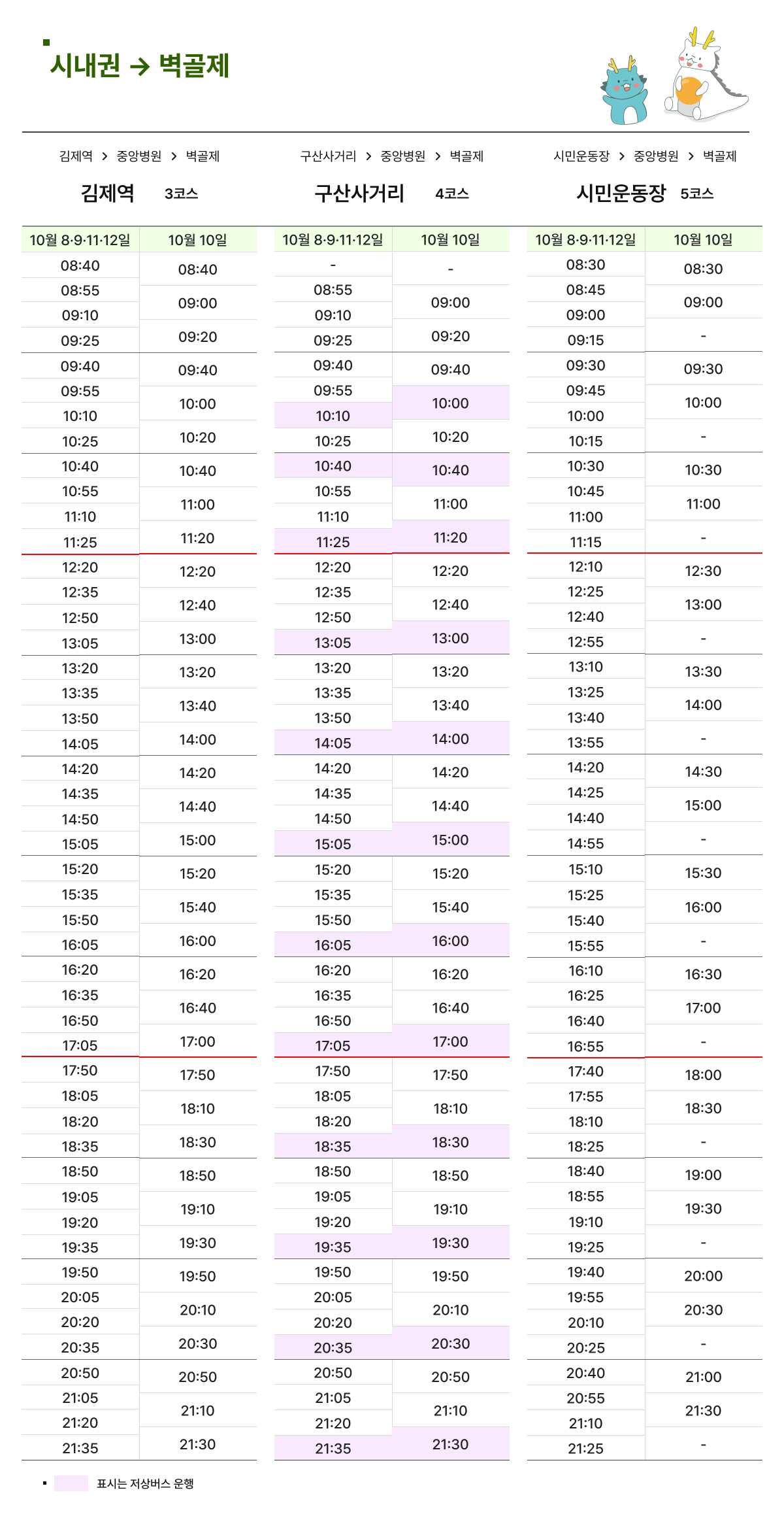 셔틀버스시간표 ㅣ 시내권 → 벽골제
